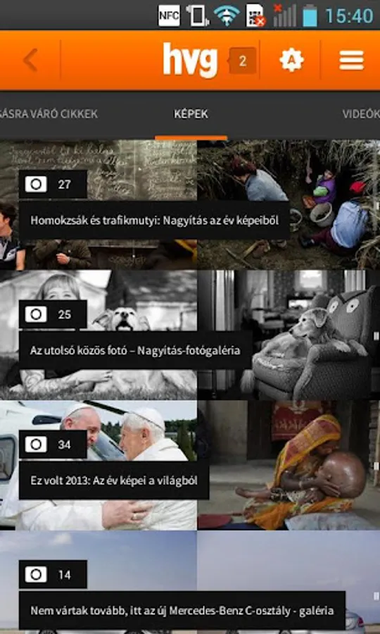 A hvg.hu-n megjelenő napi több száz magyar nyelvű hír közül rendszeresen elküldjük telefonjára azokat a híradásokat, melyek valóban érdekelhetik Önt. Nem marad le semmiről! Nagyítás galériák, vezető hírek, rendkívüli híradások és sok más extra...