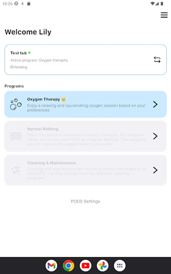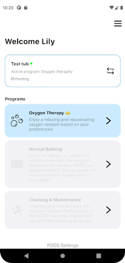 The IDUNN Spa App turns your smart device into a remote control utilizing a wireless or cellular internet connection and offers an easy user interface to manage every aspect of your PODS™.