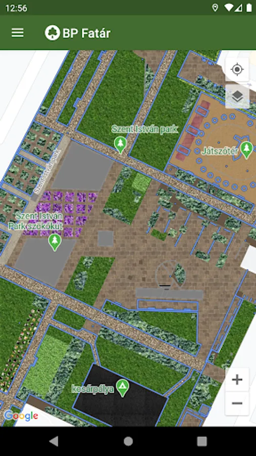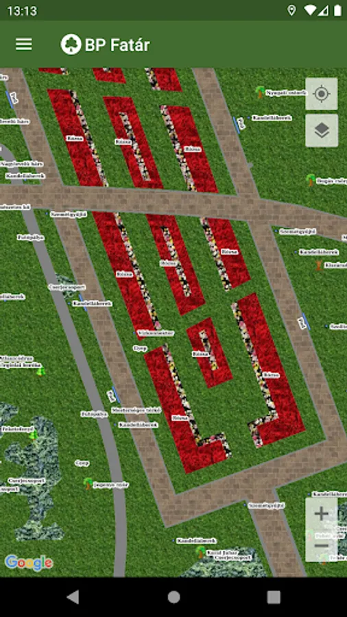 In the BP Timber application, you can view the public tree and park cadastre of the MAIN GARDEN.