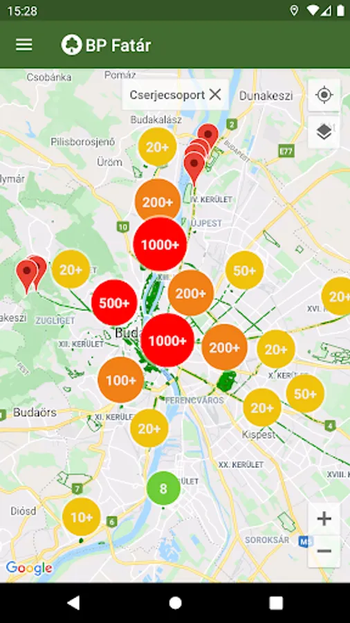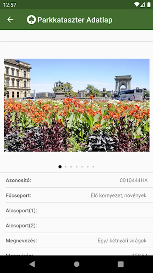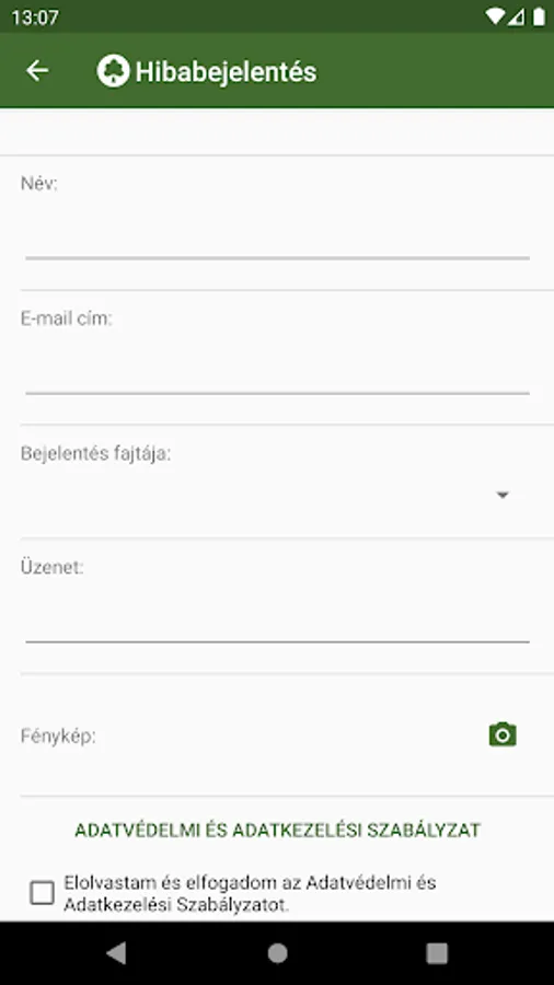 You have the opportunity to report an error for each tree and park cadastral element (such as a damaged tree, a damaged bench, etc.) to the staff of the data controller displayed on the data sheet, which you can start by clicking the Error Report button on the data sheet for that element.