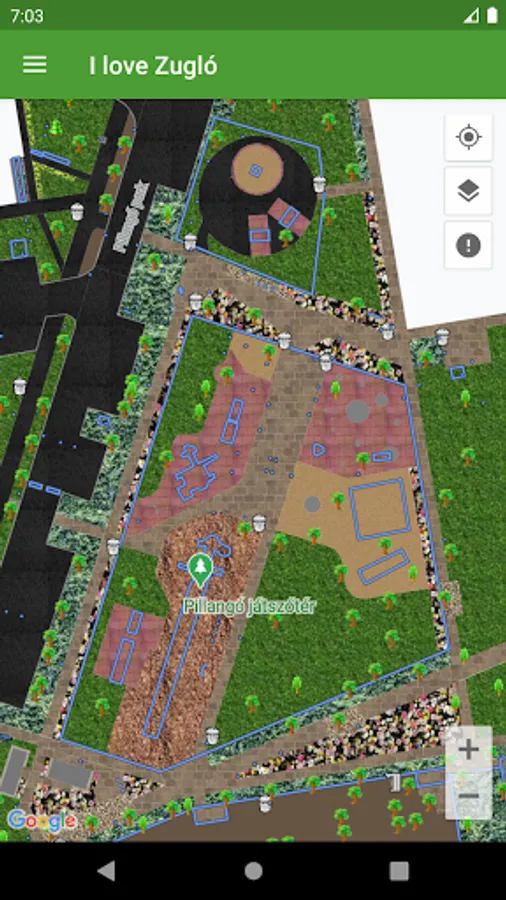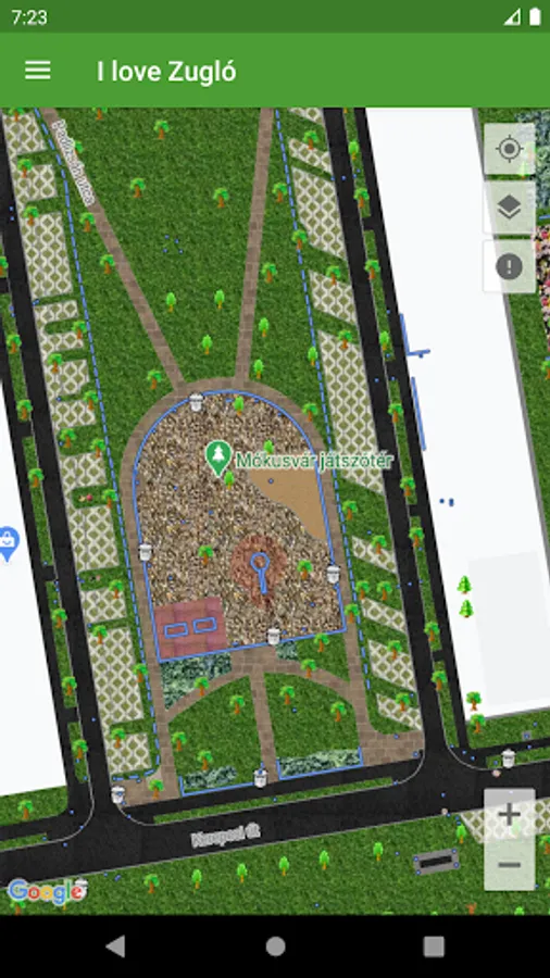 You have the option to report an error for each tree and park cadastral element (such as a damaged tree, a damaged bench, etc.), which you can start by clicking the Report an Error button on the data sheet for that element. If you want to make a general error report, then click on the appropriate button on the map, then instead of a specific cadastral element, you can start the report in a designated place on the map. Error reports are handled by the employees of Zuglói Városgazdálkodási Közszolgáltató Zrt.
