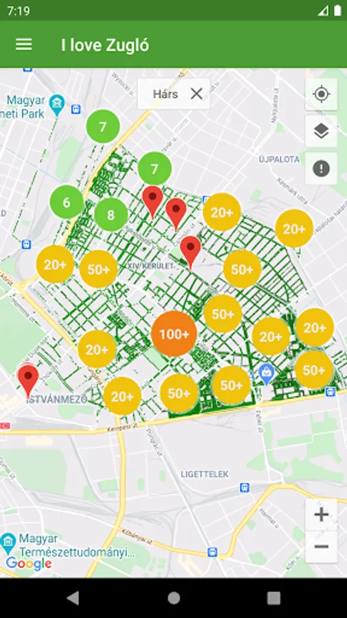 In the I love Zugló application you have the opportunity to view the public tree and park cadastre of the Municipality of Zugló.