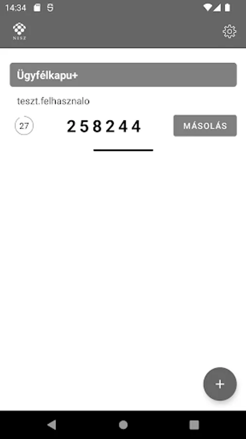 Launch the NISZ authentication app on your mobile phone and tap the "+" sign.