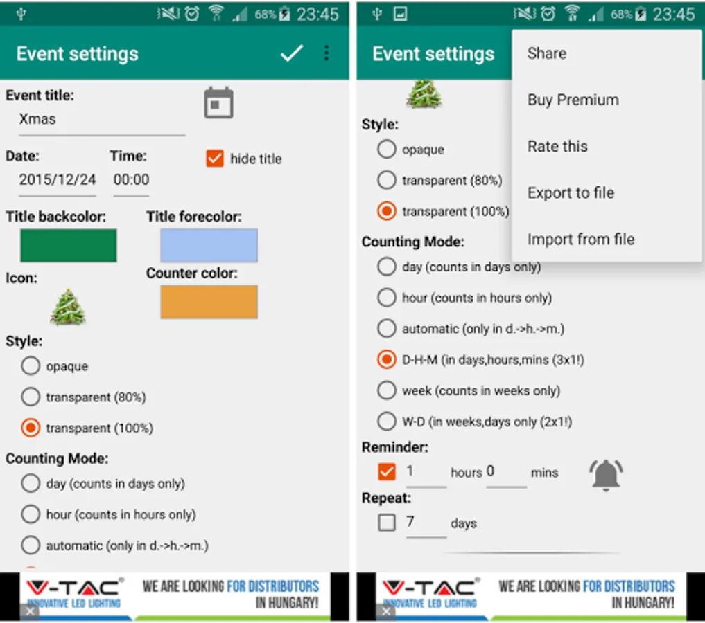 Organize your days till Christmas, your Mom's birthday, Thanksgiving, Easter, St. Patrick's day, vacation, your anniversary or any events that you don't want to forget. Never miss an important day again!