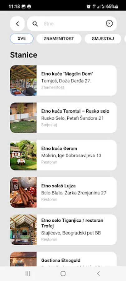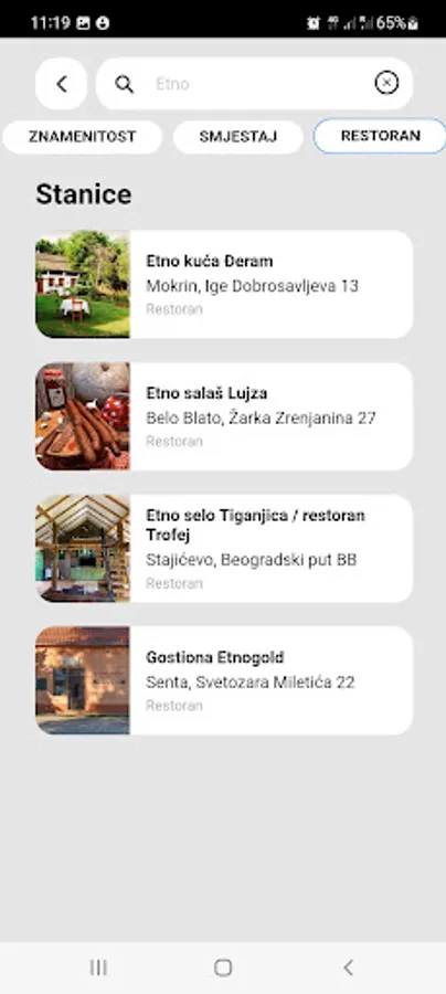 The overview on the application ensures a simple selection of the desired thematic route: Leisure, Gastro, Cultural, Eco and Ethno.