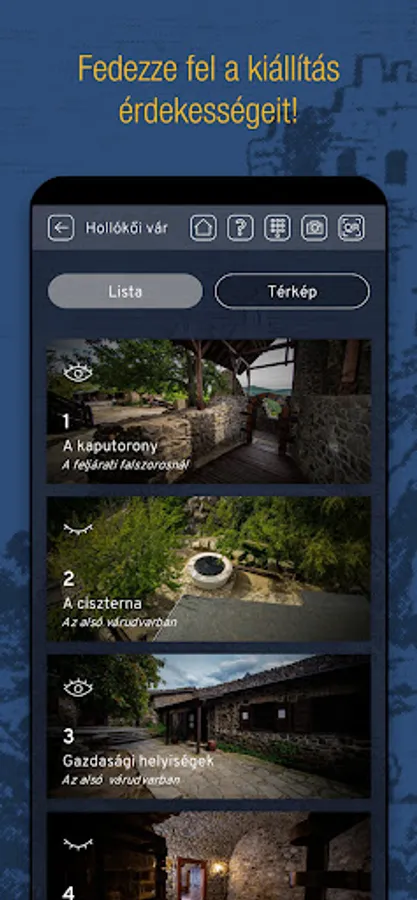 The application guides the visitor through the area of Hollókő Castle. It is possible to display interactive and informative materials at individual information points. Navigation can be done using an interactive map or in list view.