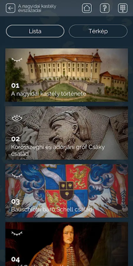 The application guides visitors through the rooms of the exhibition elaborated in the castle where you may discover the history of the castle, the owner families, the manors of the settlement, as well as its literary traditions. You will be able to display informative materials and pictures at each info points. You may choose to navigate based on an interactive map or you may select your sphere of interest in List View.