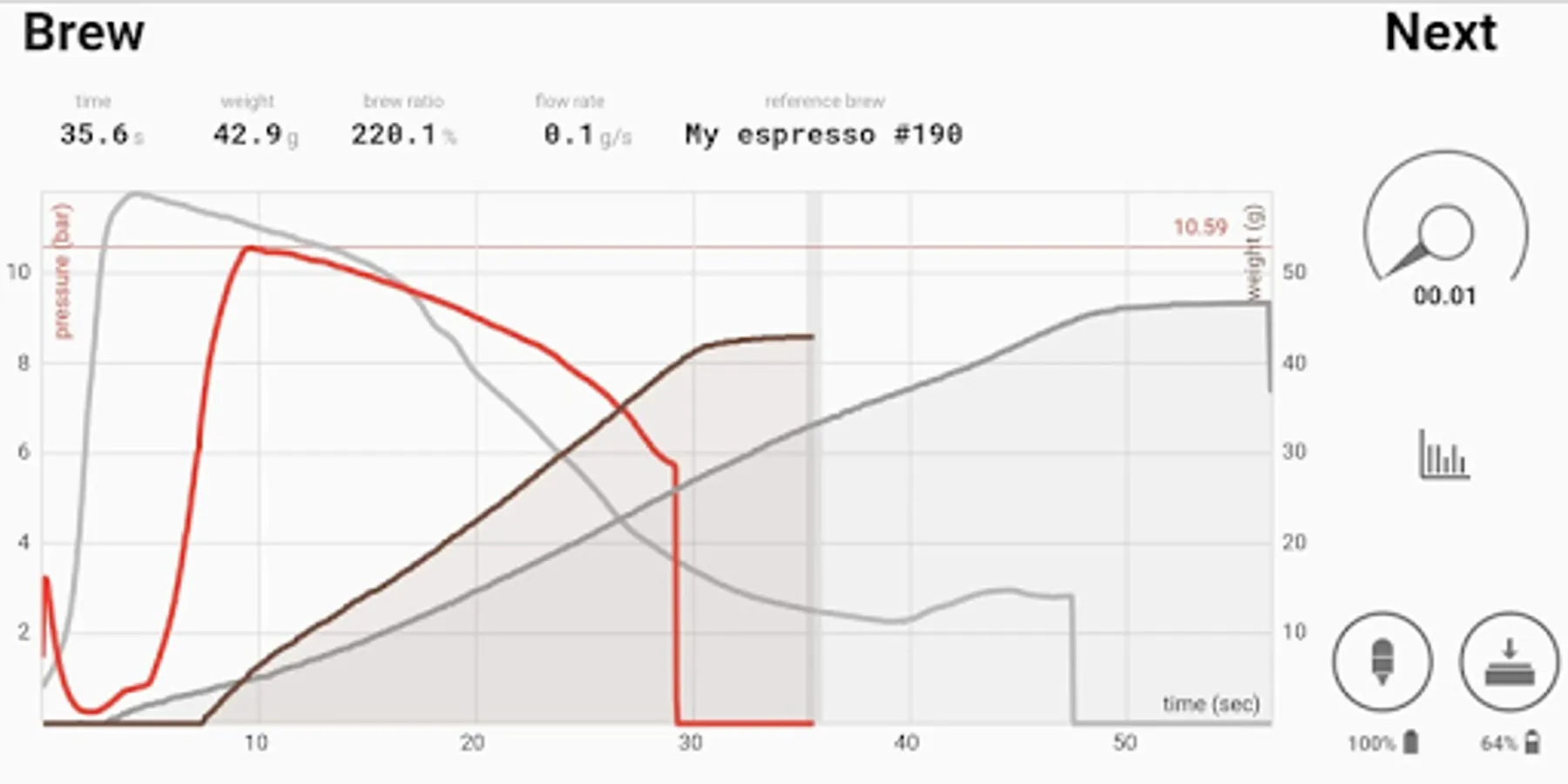 The app needs an Acaia Lunar, or Acaia Pearl scale for flow profiling.