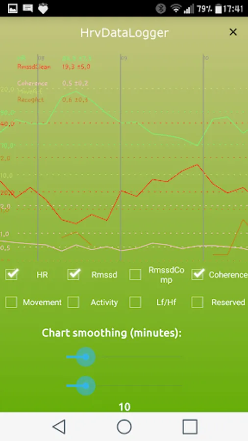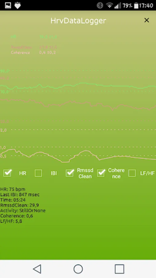 You can also inspect long-term and live short-term HRV parameters in the app. Live parameters provide insights into your current heart state (averaged/calculated from the last half minute) and can change quite quickly.