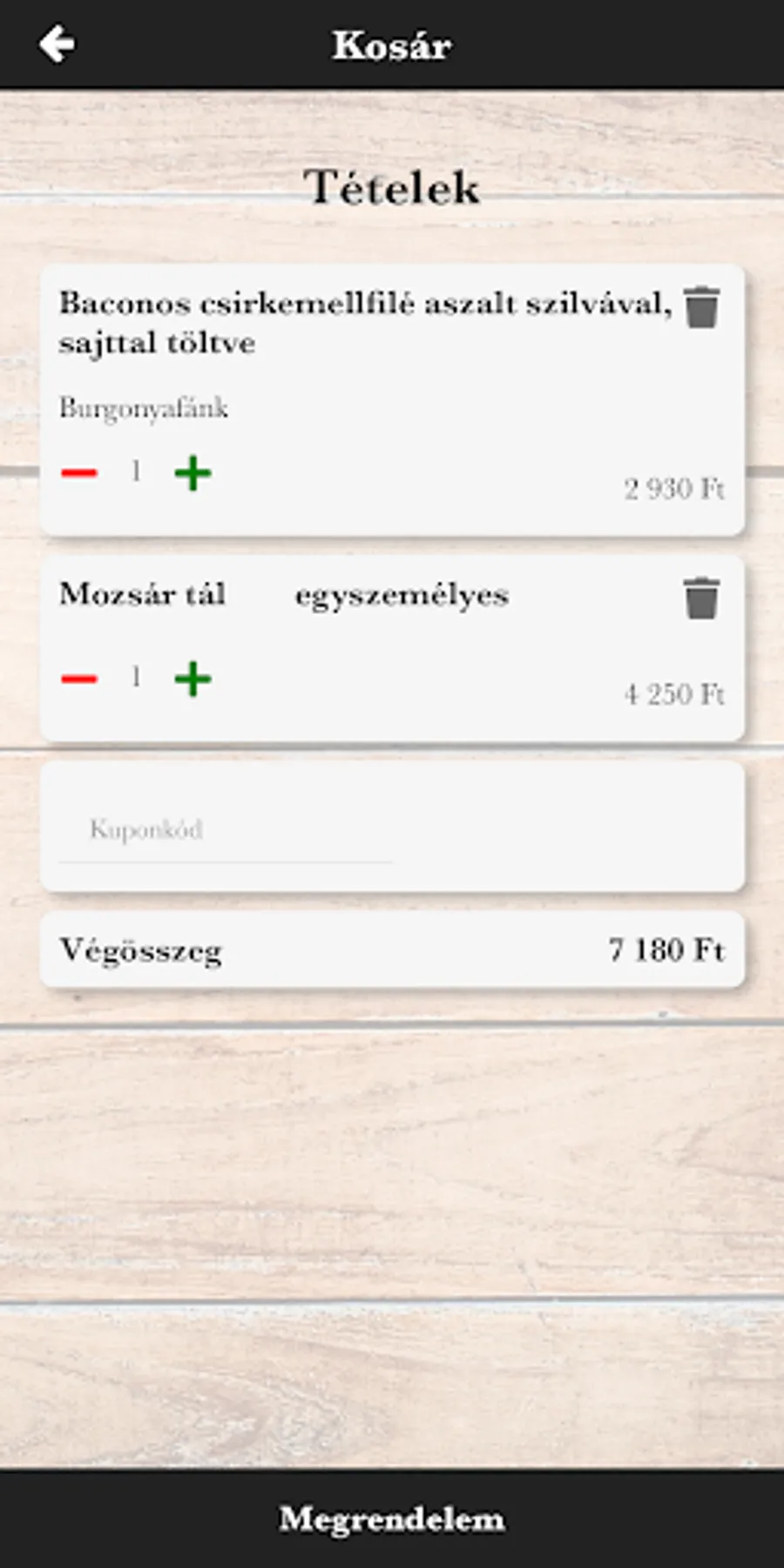 The Kis Mozsár Gyorsétterem delivers its magnificent dishes to its customers from Érd. Our menu includes starters, soups, main dishes, side dishes, pancakes, desserts and gyros. If you want delicious food, don't hesitate, order it online with a few clicks!