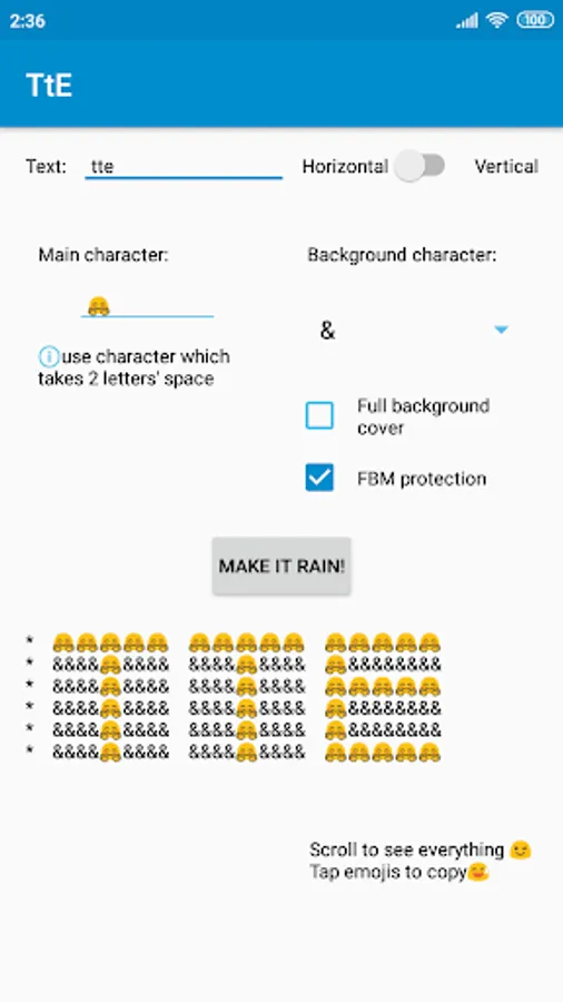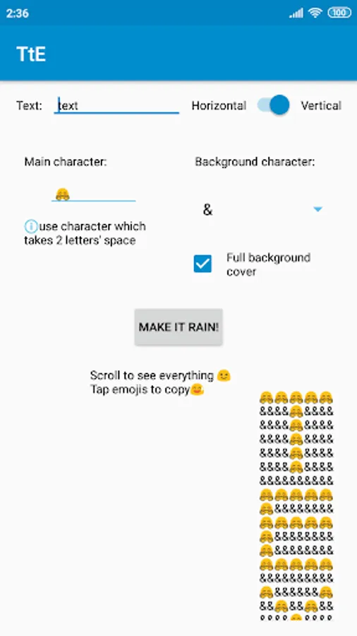 ⭐Choose the characters: you can type in any emoji as main text character and choose from several background characters as well