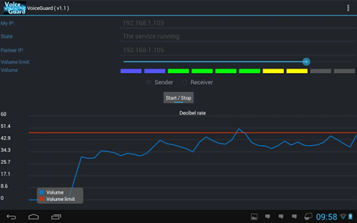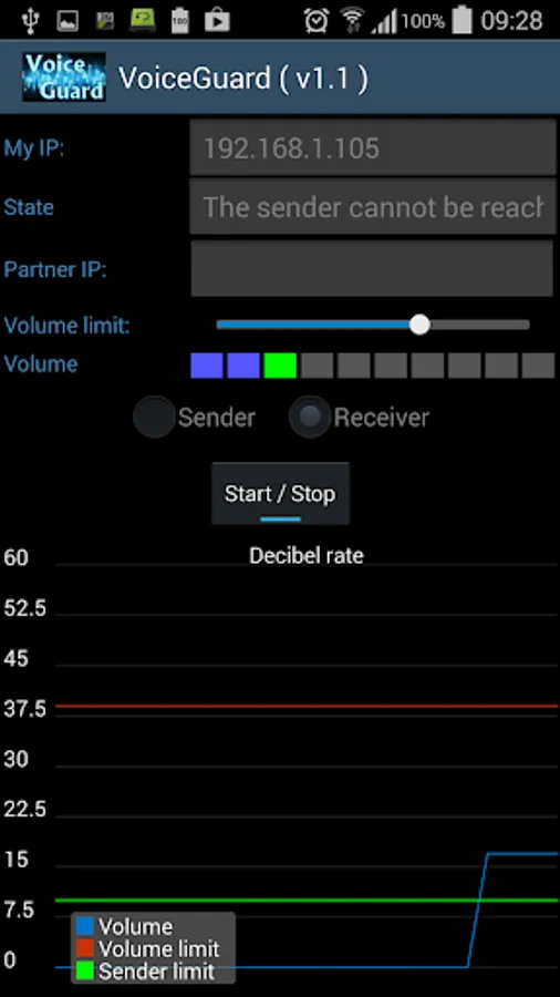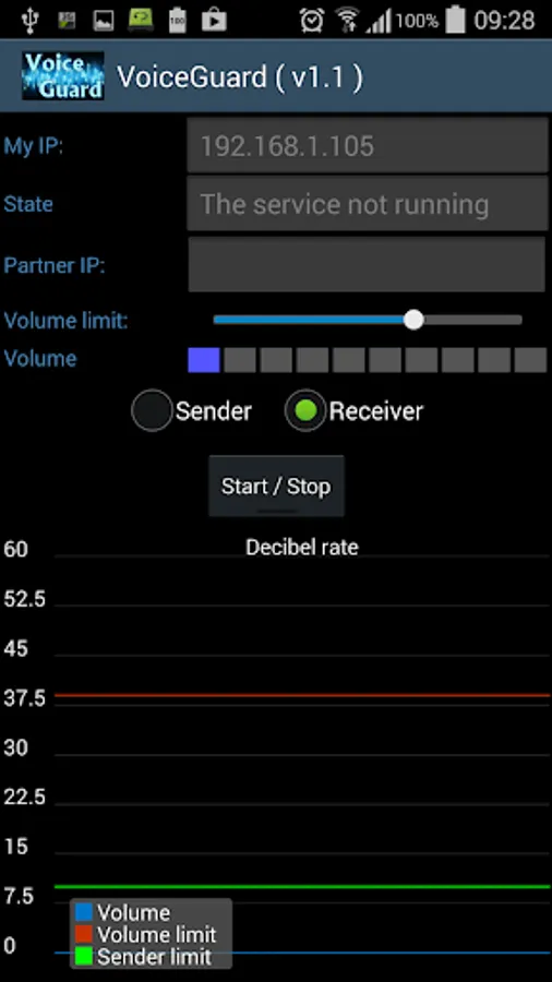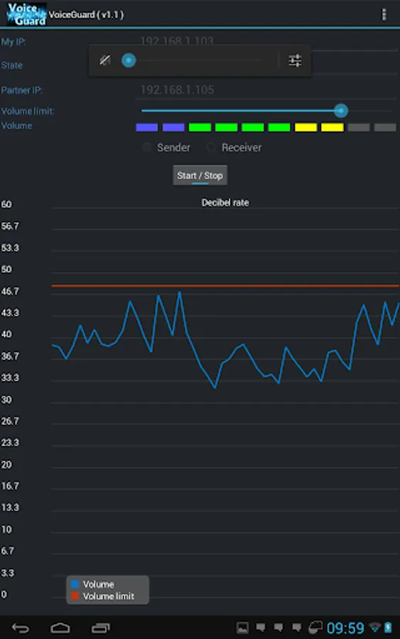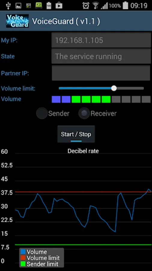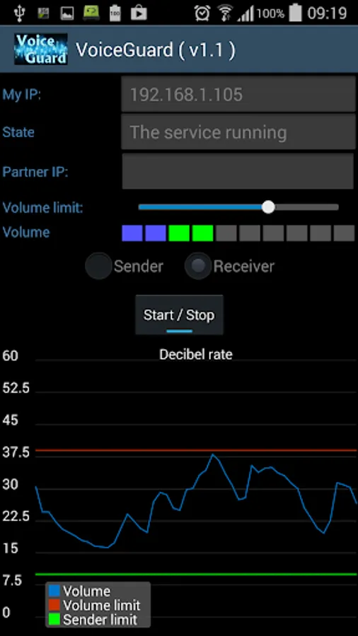 When the sign comes over from the transmitting side, it can be heard in the speaker and can be seen on the graph, If the sign level oversteps the own volume slider, then the mobile signs with vibration and blinking with the flash,
