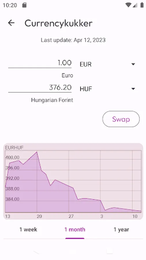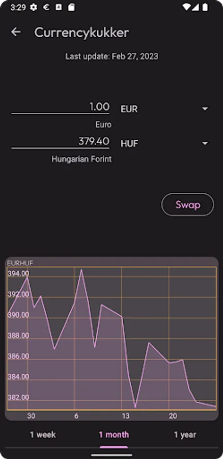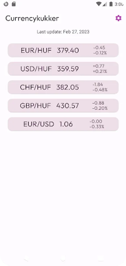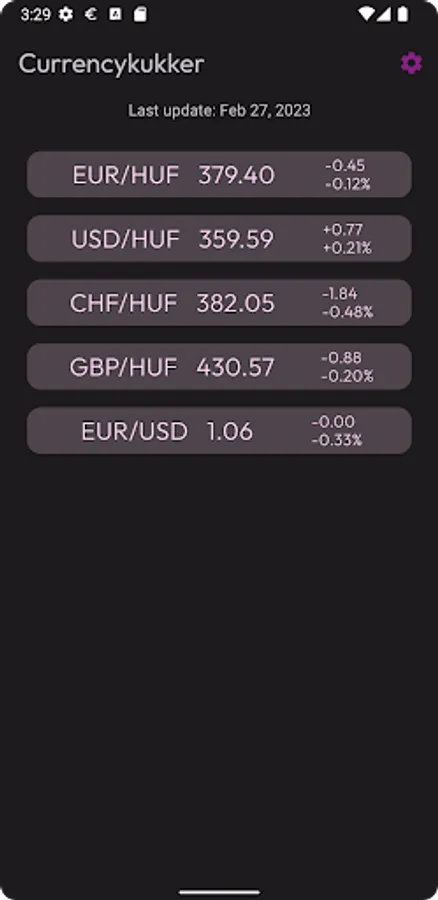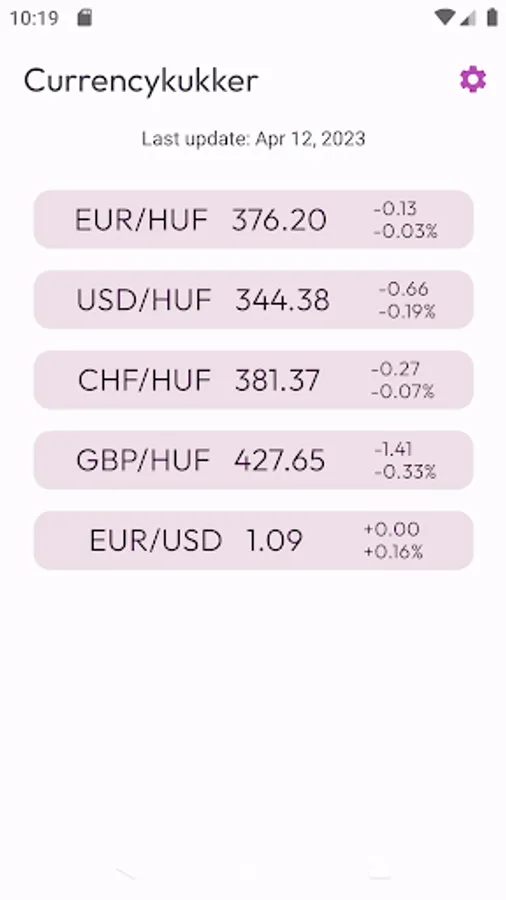 Currency exchange rates of Hungarian National Bank. Notification when new rates available. Pair any currency listed by the Hungarian National Bank. Get newest rates automatically from the official source. Calculate exchanges between currencies.