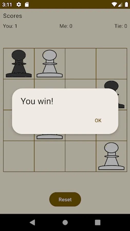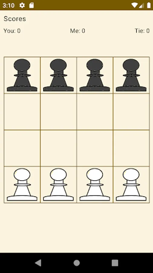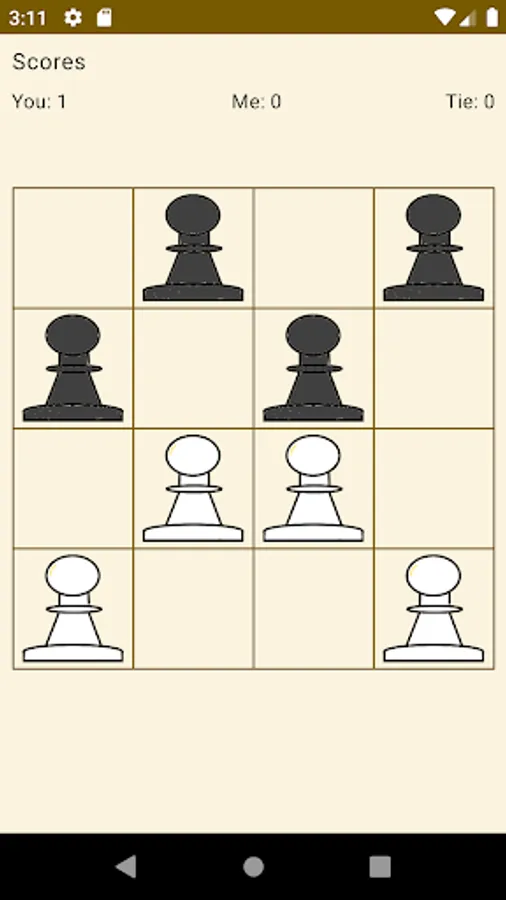 You probably easily beat this game at first. But be aware! It is learns. The rules are simple. The game played on a four by four grid with four pawns each side. Your goal is to reach the other end of the grid or take all the opponents pawns. You may step one forward or one step diagonally to take a pawn. (Just like in chess). The game gives you the advantage to always play with white pawns.