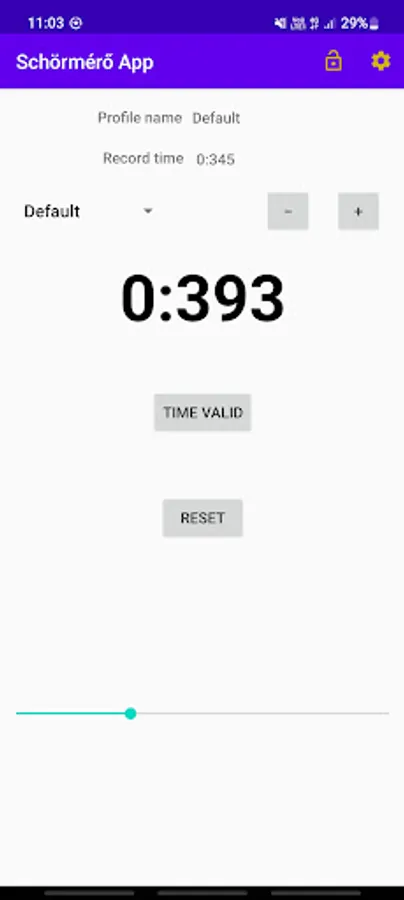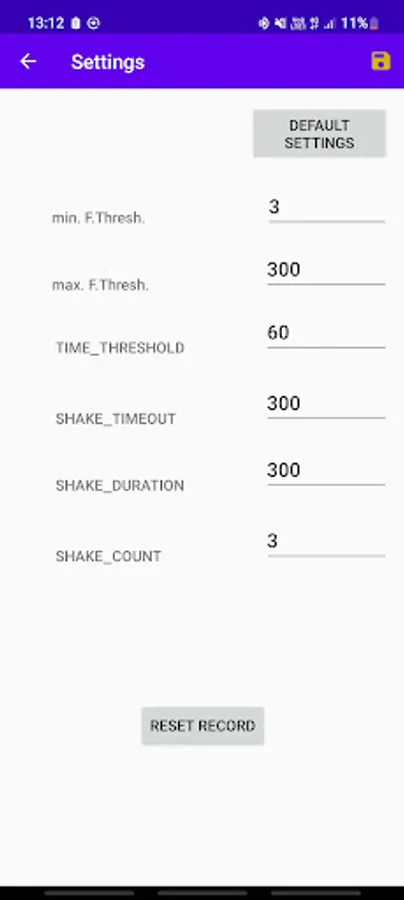 The timer works by the phone shaking it. The first shak starts the timer the second stops the timer. You can create names then save time for the name only one time can be saved for on name. You can remove names. You can set the shake sensitvity on the bottom by a slider. Time will not start unless the timer is reseted. You can reset the time by holding long on the reset button or by pressing twice on it.