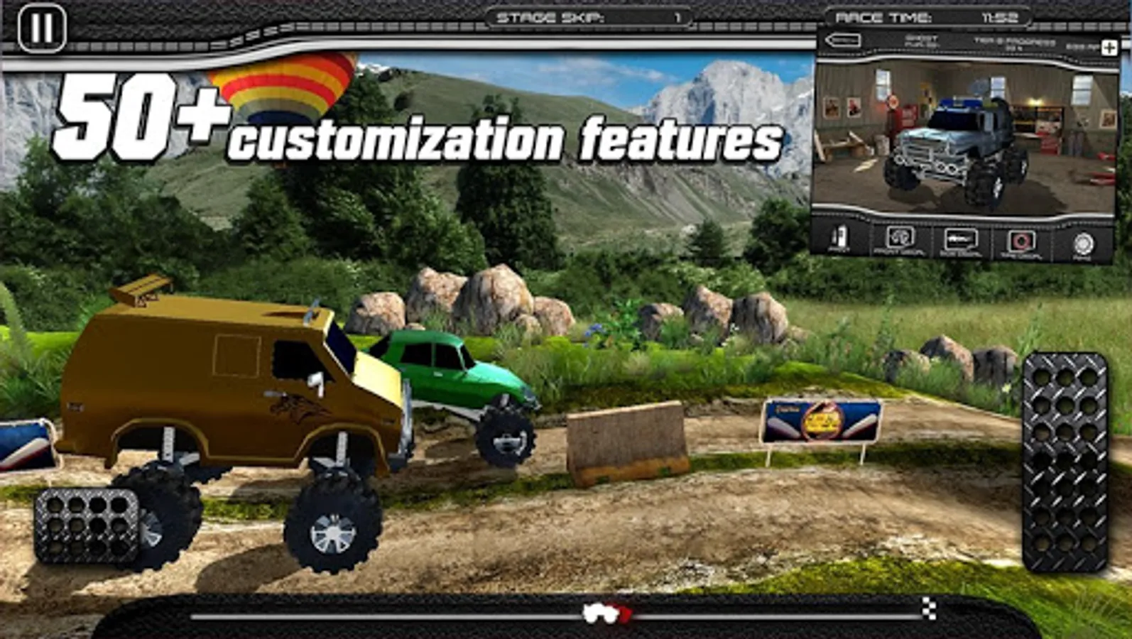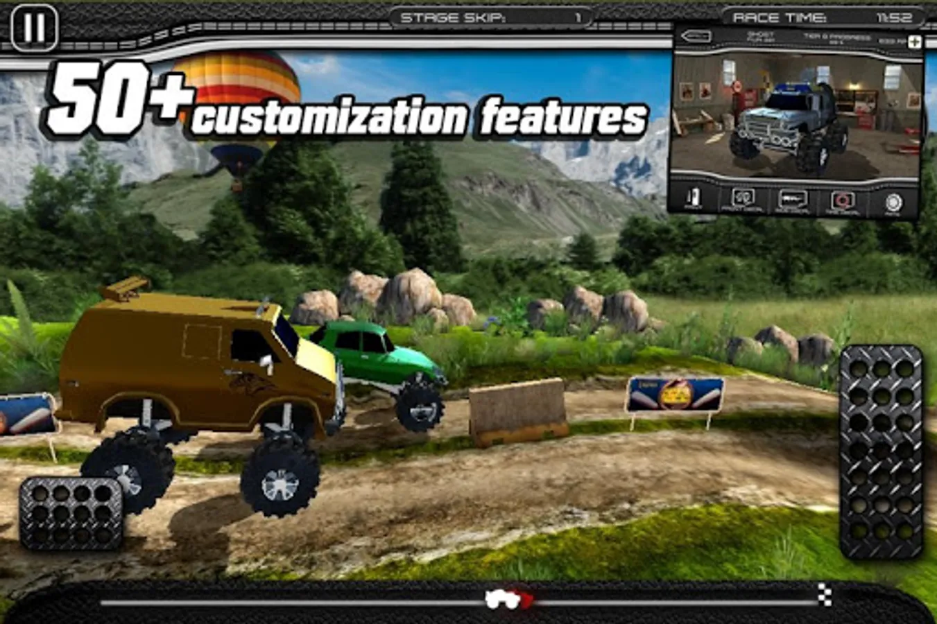 CUSTOMIZATION FEATURES allow you to change color of your monster car, put decals on sides and front of the monster car and choose a rim that fits better to your style.