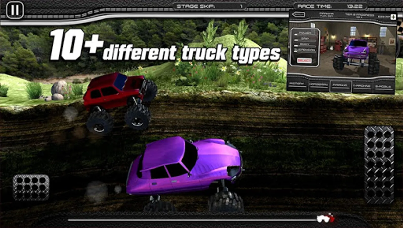 DIFFERENT TYPE OF TRUCKS include 10 unique monster cars with various upgrades and driving style, as well as more then 10 famous monster cars to beat them.