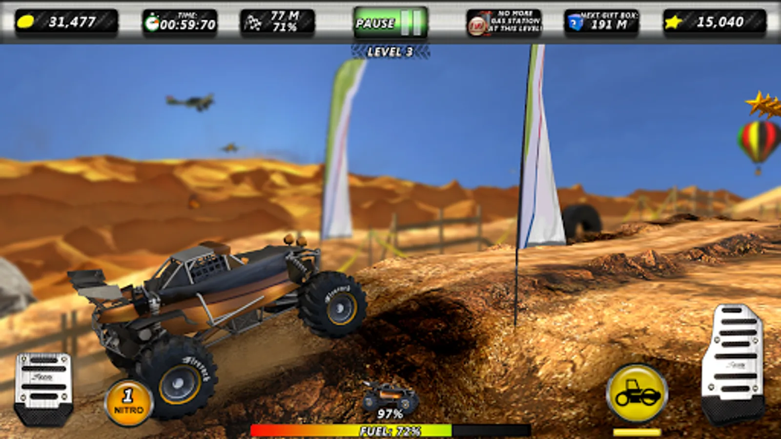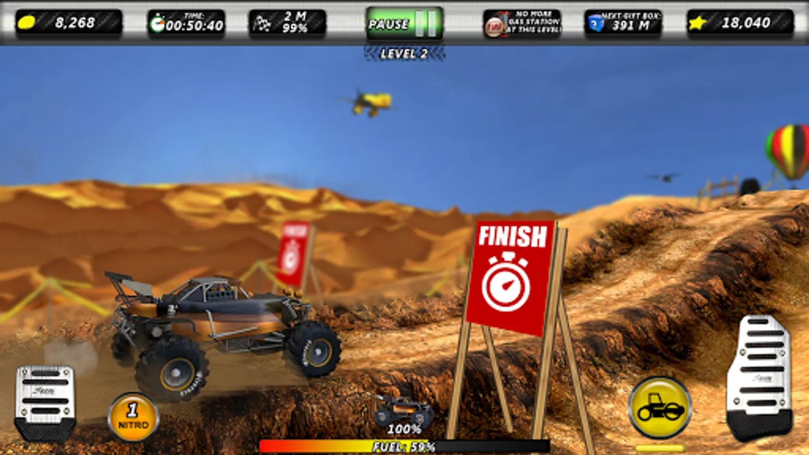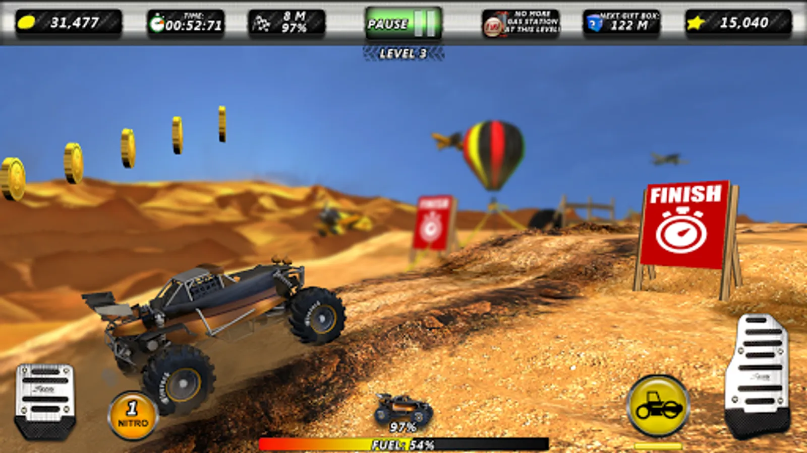 Face the challenges of unique hill climbing environments. Gain bonuses from collect coins to upgrade your car and reach even higher distances. Watch out though your vehicle will easily run out of fuel.