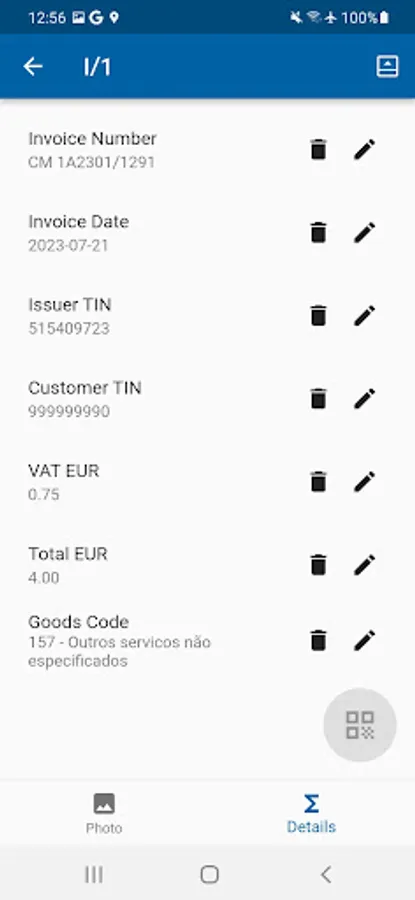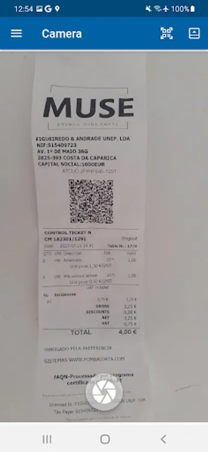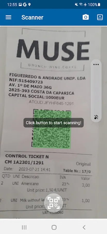 - scan the QR code that is found on the invoice and extract data from it (currently only the QR codes of invoices in Portugal are supported)
