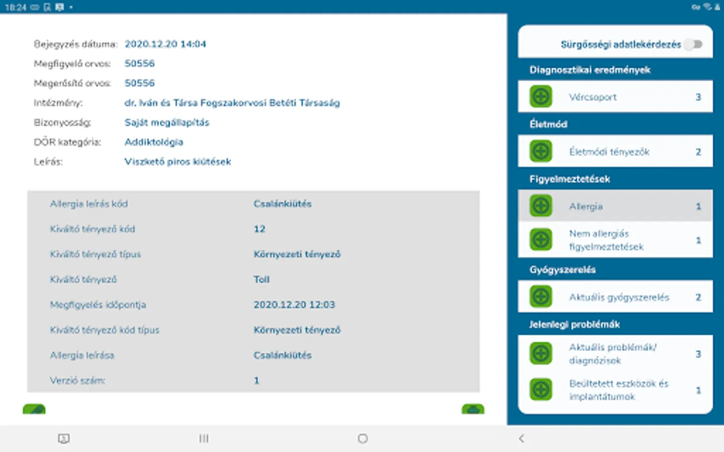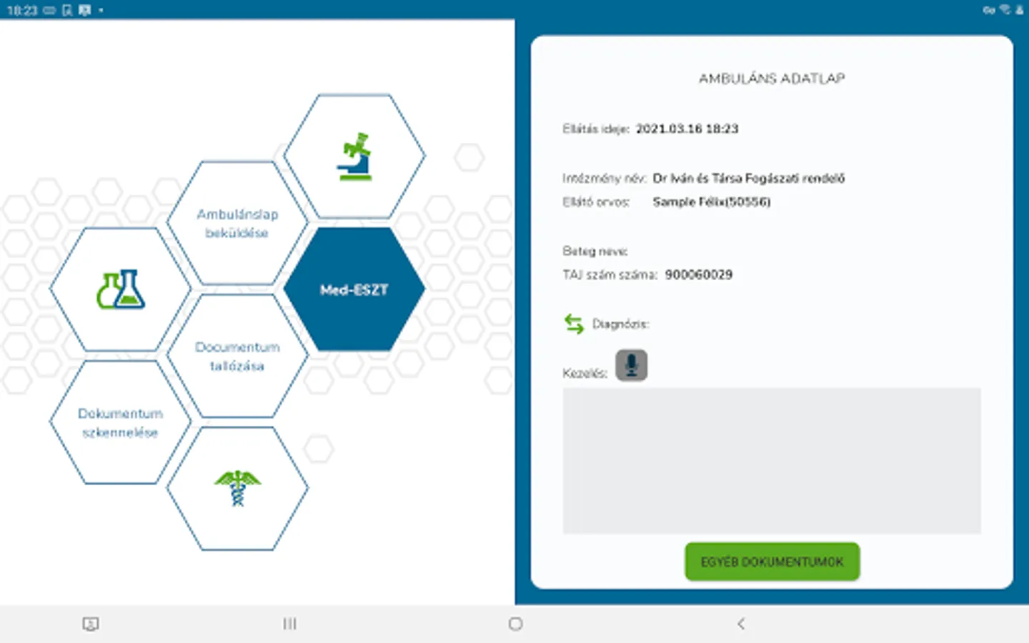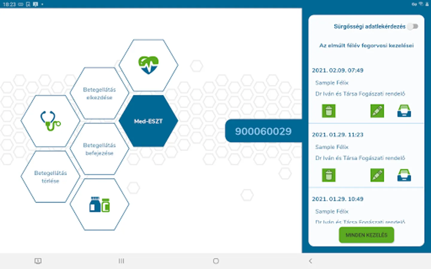 In case of a successful connection, the application allows you to complete the patient care log in a matter of seconds and in simple steps, send the generated documents to the EESZT system, or search the patient's / caregiver's history.