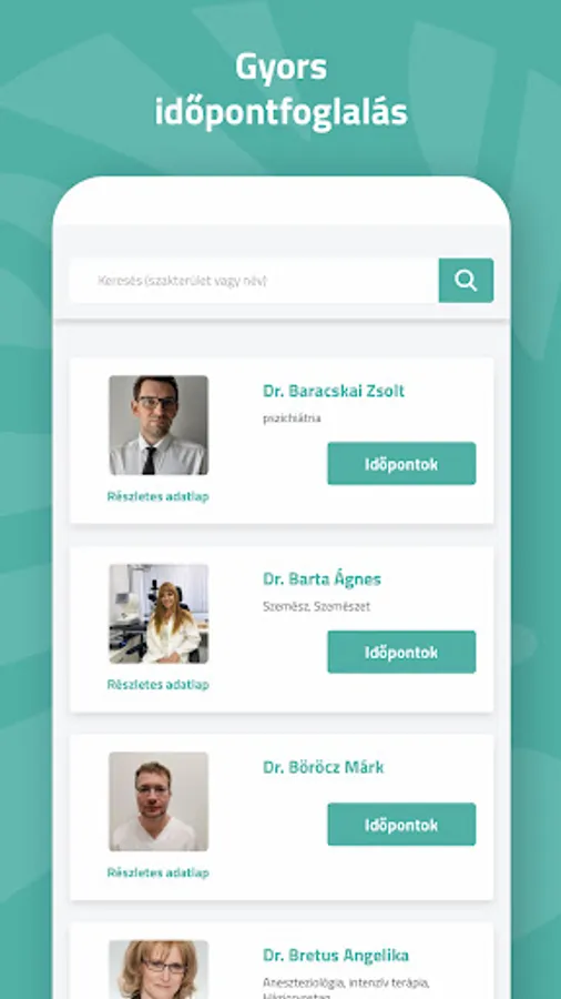 Download our application, which makes not only appointment booking, but also patient admission and call-in at the clinic much smoother. With the help of the Platán Magánklinika mobile application in Zalaegerszeg, you can get to know our doctors and services, create your own profile and book an appointment in seconds. When you arrive at the clinic, thanks to the application, registration is accelerated and you will receive a notification on your phone when it is your turn.