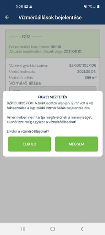 During the dictation period, you can send your water meter reading at any time 24 hours a day using the application.