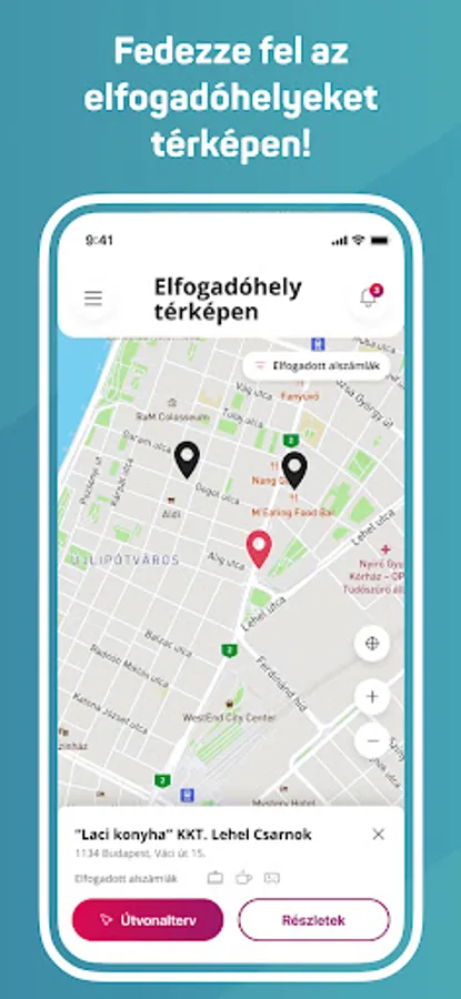 Use our list or map search engine to choose between restaurants, leisure centers and hotels that accept the MBH / MKB SZÉP Card. Using our map search engine, you can also search among the acceptance points near you by service.