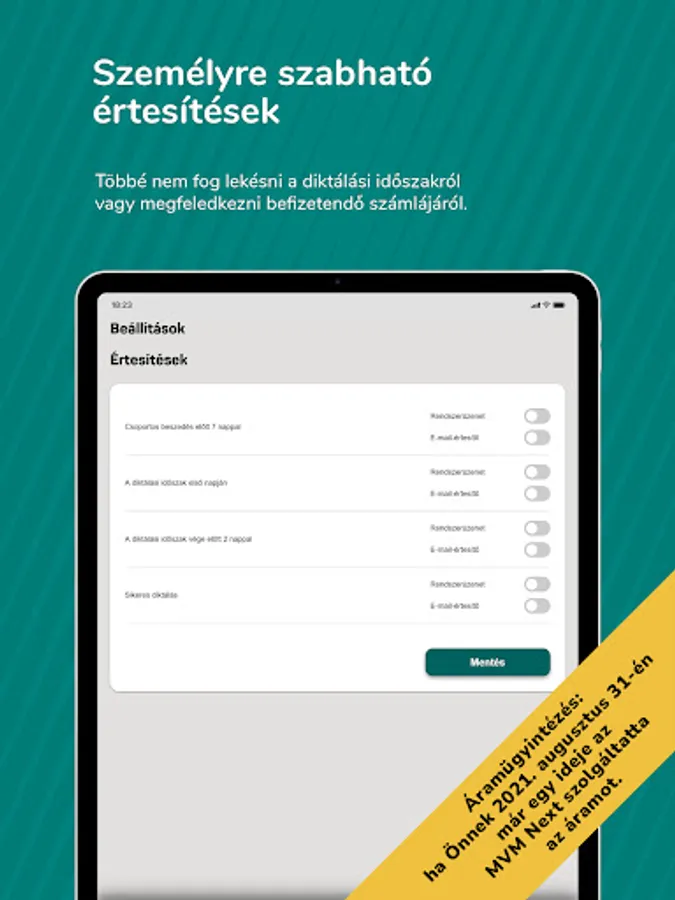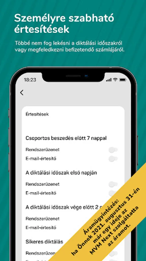 - By downloading the mobile application, you consent to MVM Next Energiakereskedelmi Zrt. Sending notifications regarding the services used (for example: dictation notification, bill payment notification) and informing about the new possibilities related to them,