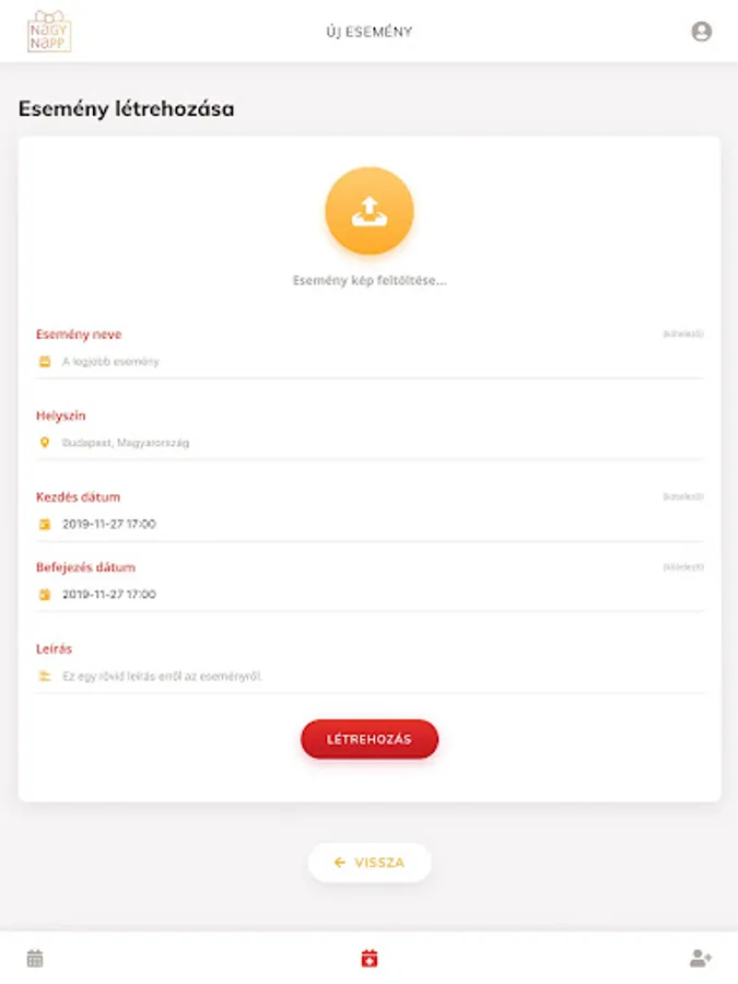 Once downloaded, registration is required and an event can be created.