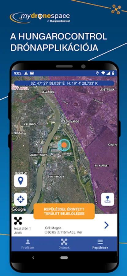 Using HungaroControl’s mydronespace application, drone pilots are able to mark the area where they plan to fly their drone. The application aims to make drone usage safer and increase the situational awareness of drone pilots.