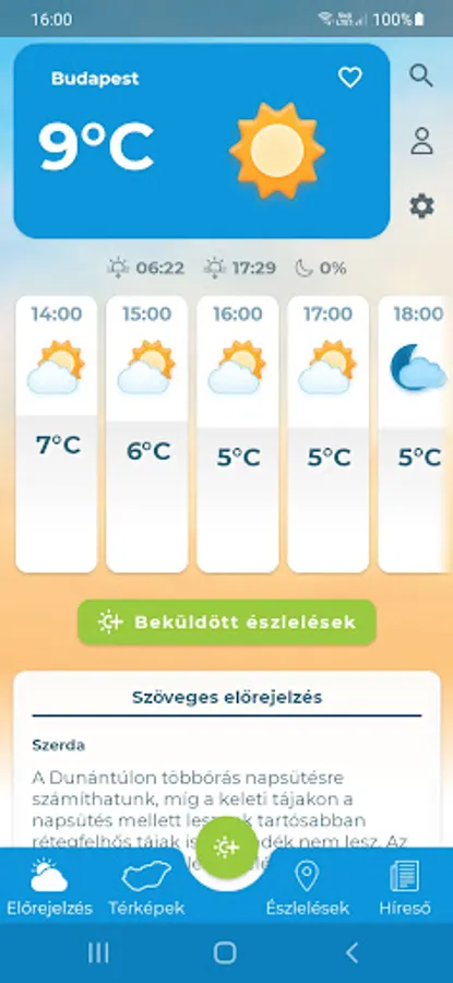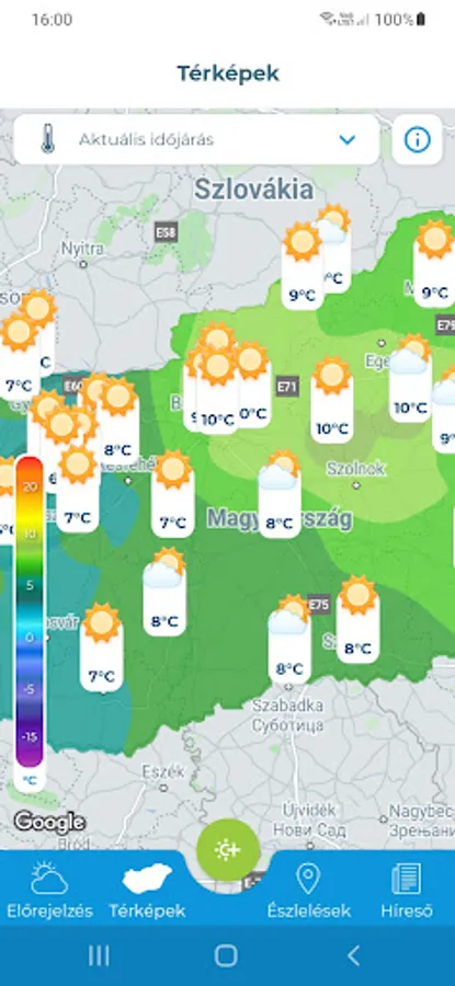 Follow the migration of the clouds on the animated satellite image and the movement of the precipitation band on the radar image! You can also see the current weather of the entire country with the help of the present time map.