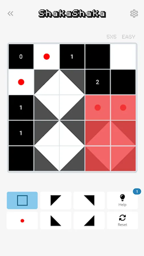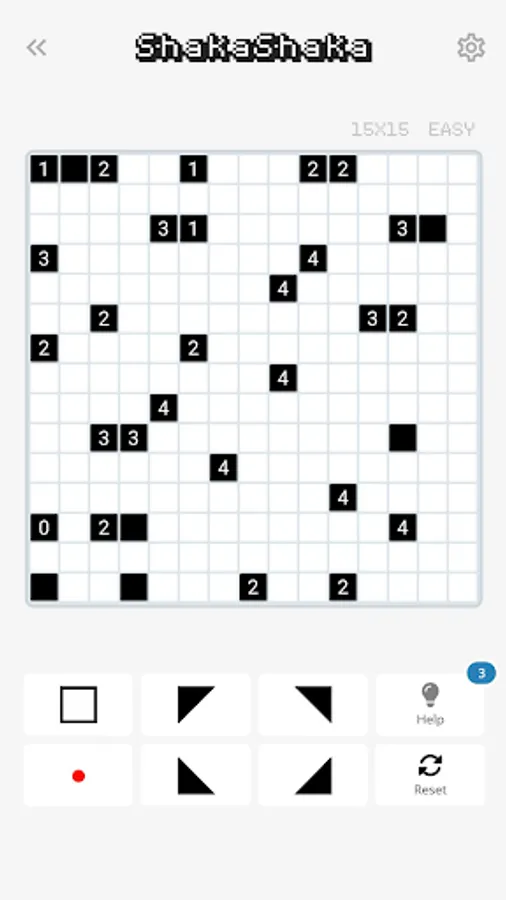 Whether you're looking for a quick game or a long-term challenge, ShakaShaka has got you covered. Choose from 5x5, 6x6, 7x7, 8x8, 9x9, 10x10, or 15x15 sized boards to match the level of challenge you desire.