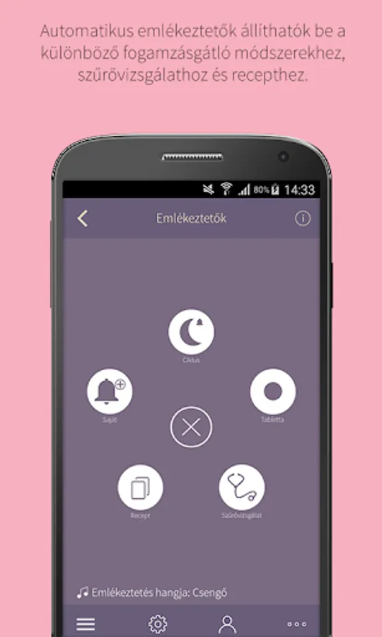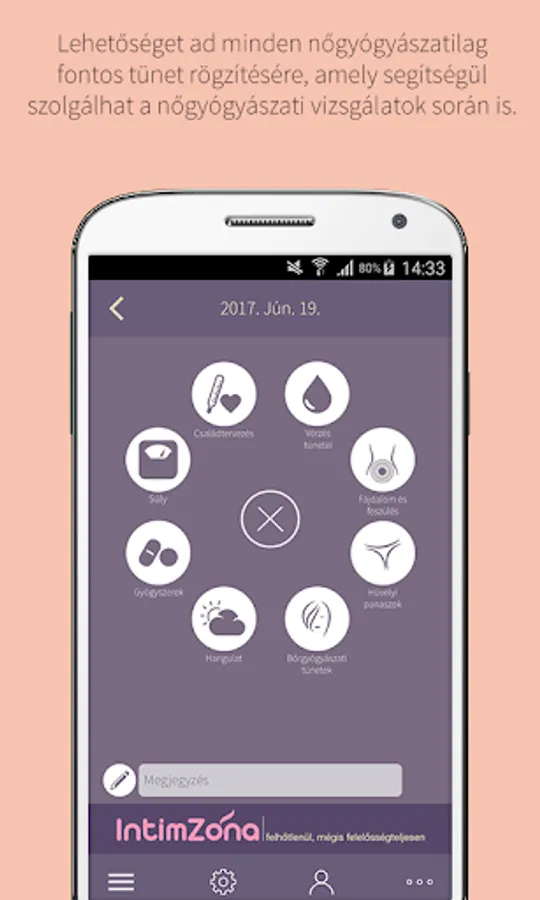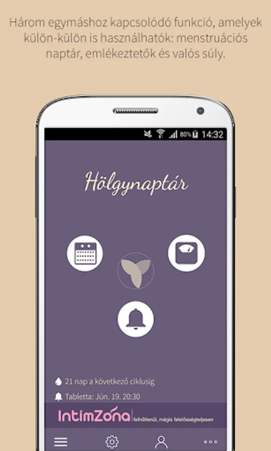 • Because of the regular monitoring of menstrual and other gynecological symptoms, it is also important that contraceptives are always applied according to the requirements. Using the Lady Calendar ©, you will automatically receive notifications of tablet intake, placement / replacement of the patch / vagina ring, or the injection time, according to your take / application period, so you never miss an opportunity.