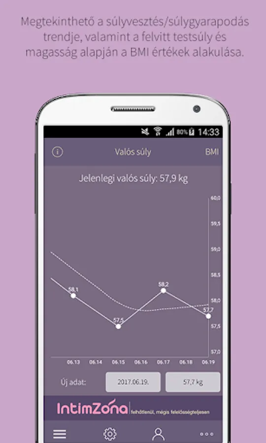 - You can see the trend of weight loss / weight gain and BMI values based on body weight and height applied.
