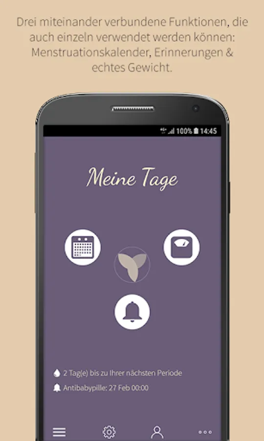 - Multifunctional - three interlinked functions that you can also use individually: menstrual calendar, reminders, weight