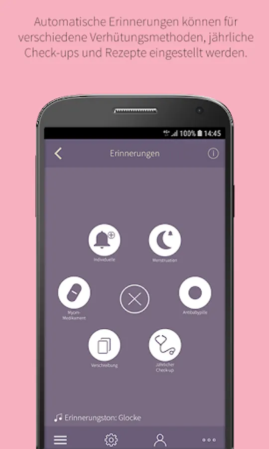 - Set your individual reminders: menstrual cycle, follow-up prescription, annual check-up, contraceptive or other medication