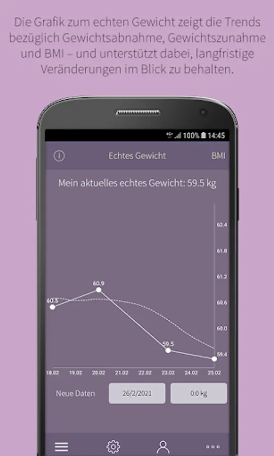 - Check your BMI (Body Mass Index) using the entered weight and height