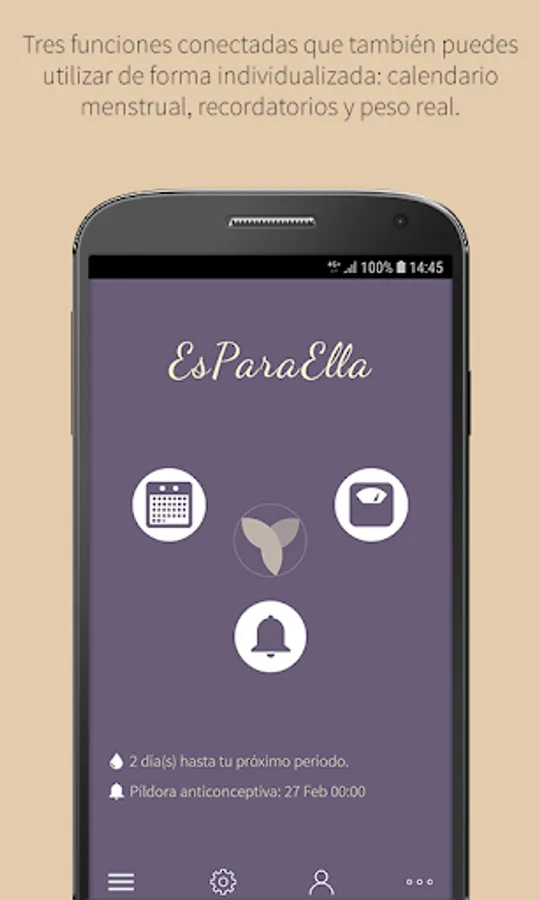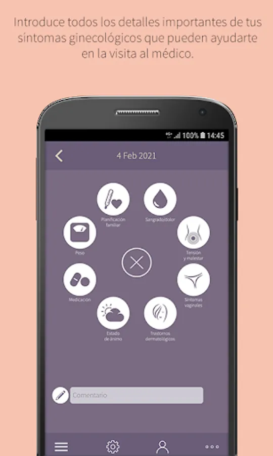 EsParaElla allows you to easily control your gynecological symptoms, your menstrual cycle and its patterns, record and control weight, taking contraceptives, bleeding between periods and long-term pain, it helps you with family planning and can also help you in your conversations with your doctor.