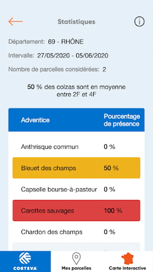 The application Colza'Obs proposed by Corteva agriscience allows you to capture live information on the development of rapeseed and weeds present. Then go to the online tool for zonal summaries of your data.