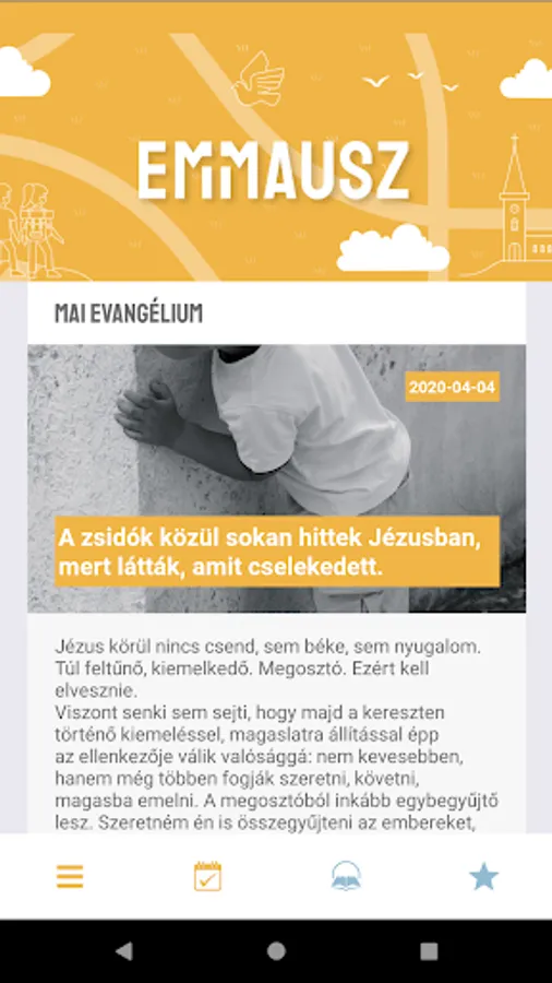 Being a Piarist means that we are passionate about what Kalazancius loved. But what did Kalazancius love so much? Jesus of Nazareth, his gospel, whatever he calls. This is why we serve children and young people, especially the most deprived. That's why we believe in young people, that's why we walk the path with them, that's why we build the world with them. This is the Emmaus way too. That is why we have prepared this application for you to find the gospel of every day of the year, according to the calendar of the Catholic Church and the calendar of the Piarist order.