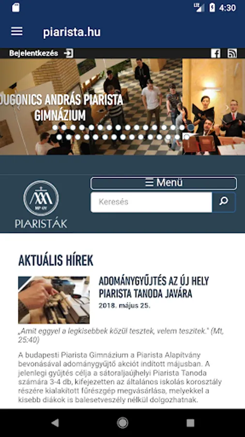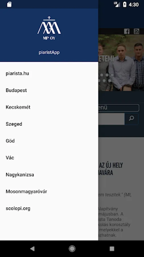 The piaristAPP the Order of the Hungarian Piarist range of official trading application, which make it easier orientation in the world Pious. Pious be viewed using the Hungarian institutions' websites and the central Hungarian and international websites. We hope that it will soon be expanded with new features to the app.