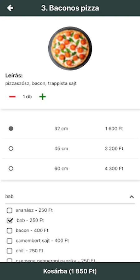 At Pizza Bumm in Dunaújváros, 40 types of pizza are available in three sizes so that everyone can find their favorite. In addition to pizzas, we also offer hamburger boxes and desserts, and we also offer our customers double and triple pizza deals at reasonable prices. If you're in the mood for a delicious lunch, order online with a few clicks!