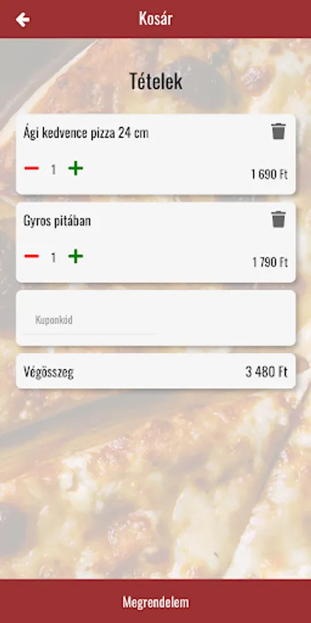 The Pizza Corner restaurant, located in Tata and delivering to many nearby settlements, is a great option for food ordering lovers, as it offers inexpensive pizzas in 3 sizes, as well as freshly baked, ready-made meals, gyros, salads, sandwiches, as well as stuffed flambés and desserts.