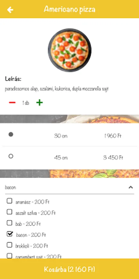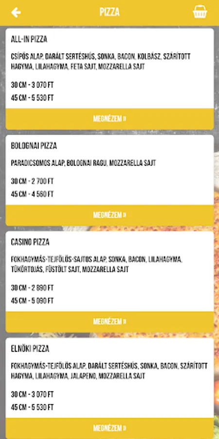 Pizzaforyou Pizzéria in Alsónémedi makes its delicious pizzas in 30cm and 45cm sizes. Our menu also includes pork dishes, wing dishes, gyros, vegetarian dishes, side dishes, children's menu, pasta, salads, pickles, dressings, desserts and soft drinks.