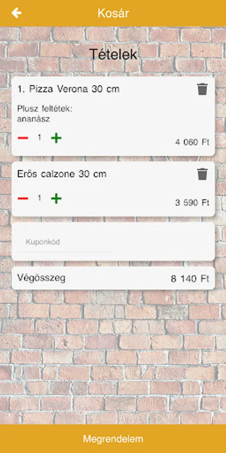 The Pizza Karaván restaurant located in the Vecsés area has everything you need to stimulate your eyes and mouth! Our main profile is pizza making. We make their classic pizzas in 3 sizes: 30 cm, 50 cm and giant 60 cm. If you want something special, you can order a 40cm square premium pizza, calzone folded pizza, or special pizza balls from us! Our menu also includes hamburgers, gyros, roasts, children's menus, hearty dishes, pasta, fresh salads and desserts! Don't hesitate, order quickly online with a few clicks!