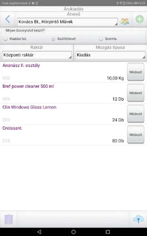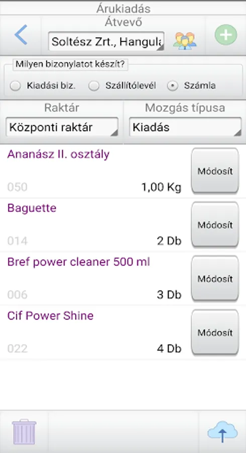 - Goods release inventory for expense certificate, delivery note, invoice