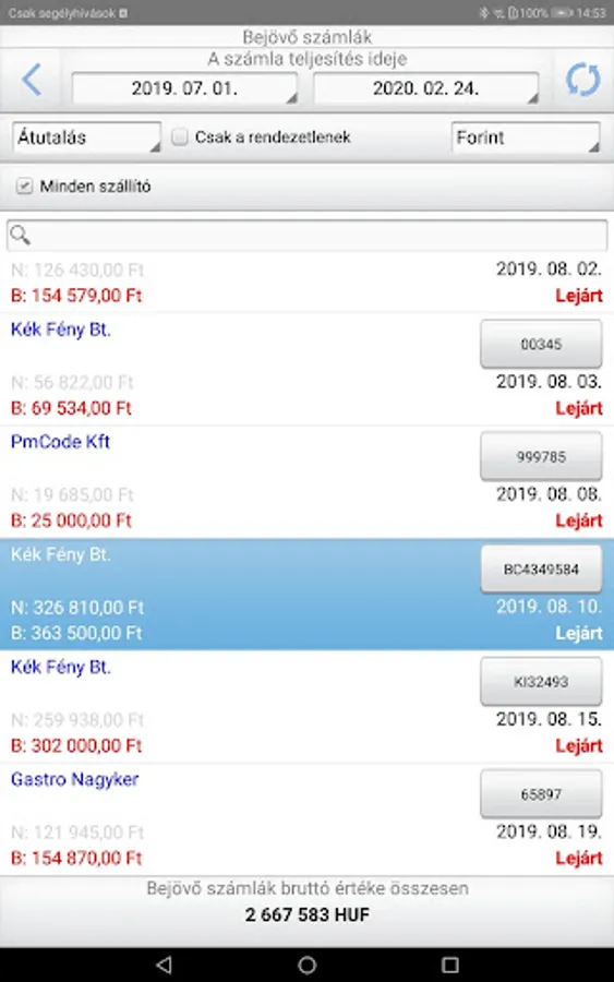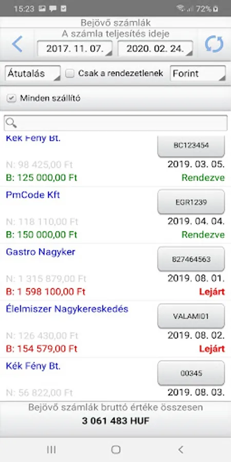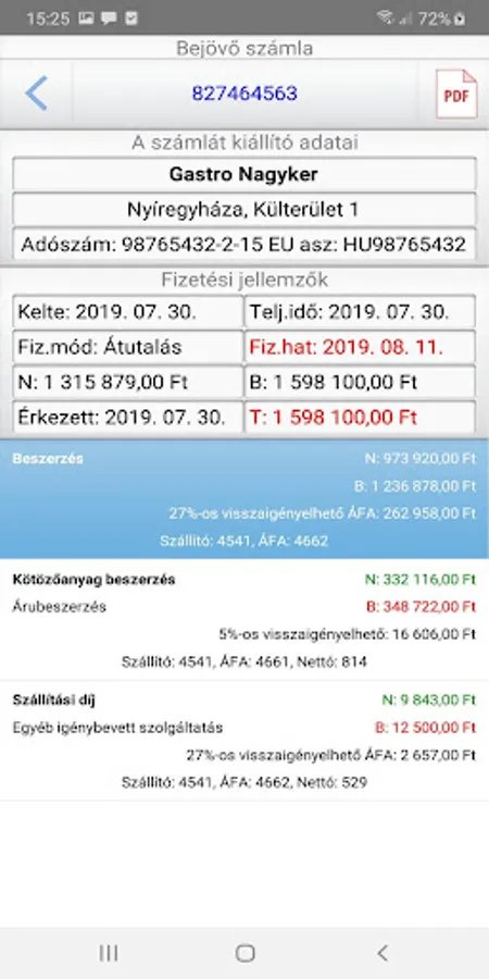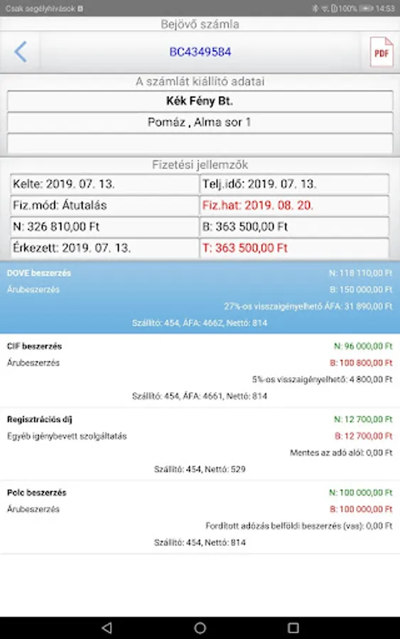 - List of Incoming Invoices, Details of the Invoices and Attached Documents