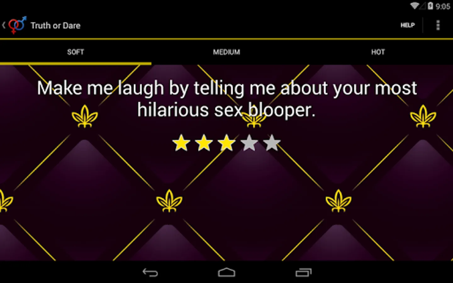 After creating intimate atmosphere, tap on the text on the screen for a new challenge and take it. When you finished, it is your mate's turn. Enjoy!