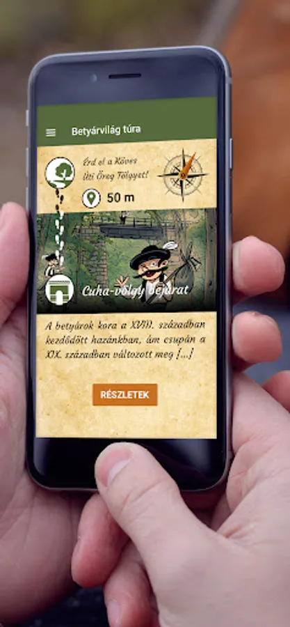The Betyárvilág tour navigation application is not just a route planner. While traditional hiking applications provide simple maps and performance tracking, Betyárvilág's offer offers a more diverse, interactive and colorful experience for hiking. The first thing that stands out when you download the app is that you can see the route (not even during the tour) ahead of time. What's more, the trip doesn't even start until we've arrived at the starting point. So if we want to see what the tour might be like in Pest, we only see that the app wittily warns us: approx. We are 240 km from the start of the tour.