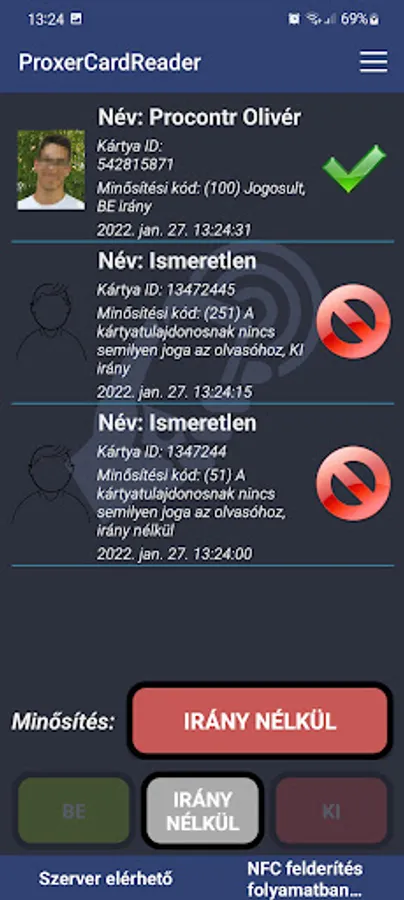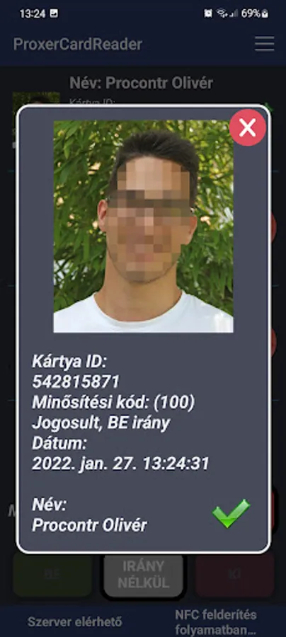 A utility used for Proxer access and time and attendance systems that establishes a secure connection over WiFi or mobile Internet and identifies the user after pre-registration.